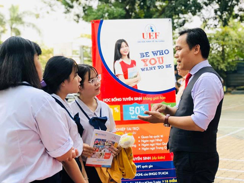 ThS Phạm Doãn Nguyên, Giám đốc Trung tâm Tư vấn Tuyển sinh, ĐH Kinh tế - Tài chính (UEF) TP HCM tư vấn tuyển sinh cho thí sinh.