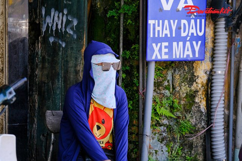 Nắng nóng còn tiếp tục ở nhiều địa phương. Người dân ra đường cần che chắn cẩn thận. Ảnh: Lê Khánh.