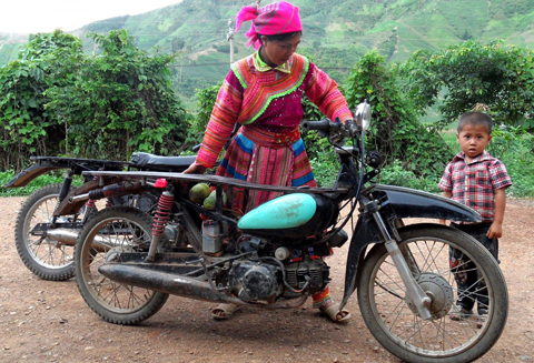 Phương tiện đi làm rẫy hằng ngày của đồng bào Mông xã Cư Pui chủ yếu là những chiếc xe máy độ chế