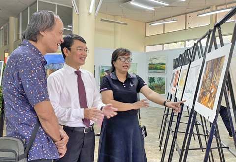 Đại biểu thưởng thức tranh tại triển lãm