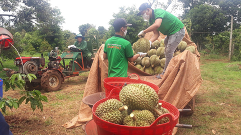 Hợp tác xã Dịch vụ Nông nghiệp Tân Lập Đông (xã Tân Lập, huyện Krông Búk) thu hoạch sầu riêng. Ảnh: Thuận Nguyễn