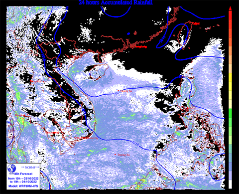 Đêm qua và sáng sớm nay (4/10): ở khu vực Trung Bộ, Tây Nguyên và Nam Bộ có mưa rào và dông rải rác, cục bộ có mưa to. Lượng mưa tính từ 19h ngày 3/10 đến 3h ngày 4/10 có nơi trên 30 mm như: Hạnh Lâm (Nghệ An) 51.8 mm, Ba Trang (Quảng Ngãi) 39.6 mm, Bồng Sơn (Bình Định) 41.9 mm,…