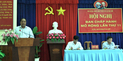 Phát biểu tại hội nghị, Phó Bí thư Tỉnh ủy Y Biêr Niê ghi nhận, đánh giá cao những kết quả huyện Ea Kar đã đạt được trong 9 tháng năm 2022; đồng thời chỉ rõ một số hạn chế, như: thu biện pháp tài chính và giải ngân vốn đầu tư đạt thấp; tình trạng vi phạm Luật Lâm nghiệp còn diễn biến phức tạp, số vụ vi phạm tăng; công tác đào tạo nghề đạt thấp; chưa phát triển được tổ chức đảng, đoàn thể trong các doanh nghiệp ngoài quốc doanh...