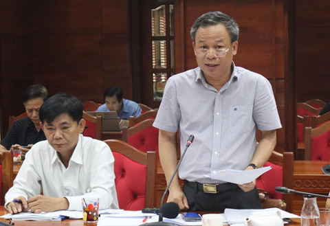 Ông Phan Xuân Bách, Phó Giám đốc phụ trách Ban Quản lý dự án đầu tư xây dựng công trình giao thông và nông nghiệp phát triển nông thôn tỉnh báo cáo tiến độ thực hiện Dự án tại cuộc họp.