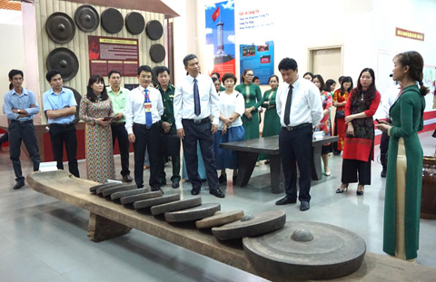 Du khách tham quan gian trưng bày cồng chiêng tại Bảo tàng tỉnh Đắk Lắk.
