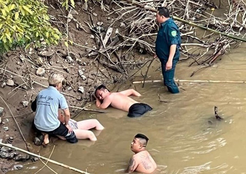 Khoảng 20 phút sau, cô gái đã được anh Hiếu đưa lên bờ an toàn. Tuy nhiên, do nước chảy xiết, khi đưa được người phụ nữ lên bờ, anh Hiếu đã đuối sức.