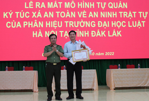 Nhân dịp này, Công an tỉnh cũng đã trao Giấy khen tặng Phân hiệu Trường Đại học Luật Hà Nội tại tỉnh Đắk Lắk vì đã có thành tích xuất sắc trong phong trào “Toàn dân bảo vệ an ninh Tổ quốc” năm 2021.