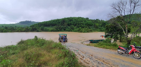Nước dâng cao ở khu vực bến đò xã Cư San (huyện M'Drắk).