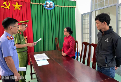Cơ quan Cảnh sát điều tra Công an huyện Ea H'leo đọc quyết định tạm giam bà Đoàn Thị Lam.