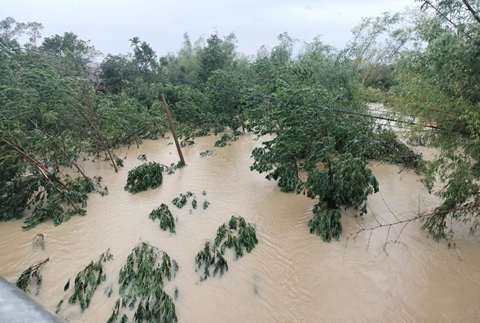 Mưa bão khiến cây trồng của bà con ngập sâu trong nước. Ảnh: Chí Đại.