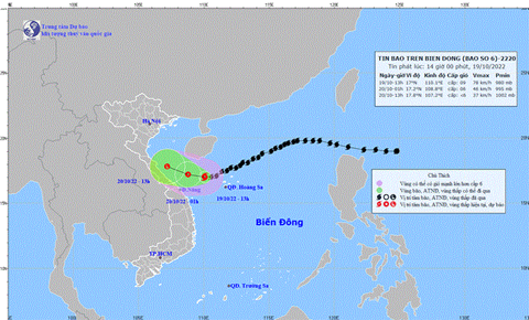 Chiều 19/10, Trung tâm Dự báo Khí tượng thủy văn quốc gia tiếp tục thông tin về cơn bão số 6. Theo Trung tâm, 13h ngày 19/10, vị trí tâm bão ở vào khoảng 17,0 độ Vĩ Bắc; 110,1 độ Kinh Đông, trên vùng biển phía Tây Bắc quần đảo Hoàng Sa.