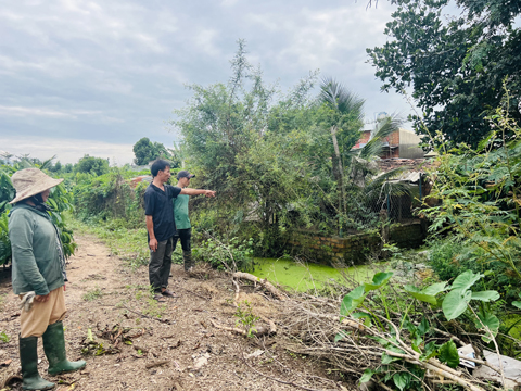 Cán bộ Phòng Tài nguyên và Môi trường kiểm tra thực tế hiện trường.
