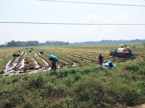 Người dân phường Khánh Xuân (TP. Buôn Ma Thuột) thu hoạch lúa để chuẩn bị làm đất cho vụ đông xuân