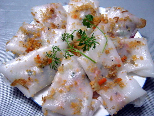 Nếu bánh bột lọc truyền thống được hấp chín với lớp vỏ mềm mịn thì phiên bột lọc chiên cũng là món đặc trưng tại Huế.