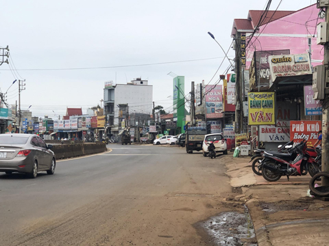 Hoạt động buôn bán của các hộ kinh doanh trước chợ cũ lấn chiếm hành lang an toàn giao thông trên Quốc lộ 14 đoạn qua xã Pơng Drang (huyện Krông Búk)