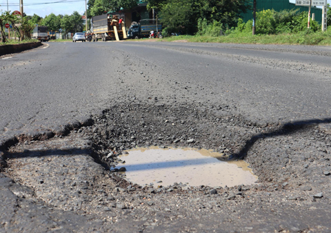 Một vị trí trên đường tránh phía Tây TP. Buôn Ma Thuột bị hư hỏng, xuống cấp