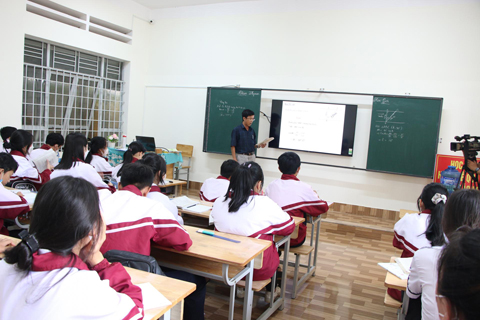 Thầy Bùi Công Bình, Hiệu trưởng nhà trường cho biết, để đáp ứng yêu cầu thực tiễn đặt ra, nhà trường đã chủ động đầu tư cơ sở vật chất, hạ tầng kỹ thuật cho việc ứng dụng CNTT. Trong đó, đáng chú ý là việc nâng cấp đường truyền Internet toàn trường; trang bị máy chiếu kết hợp bảng tương tác điện tử hoặc tivi thông minh cho 100% các lớp khối 1, 2, 3.