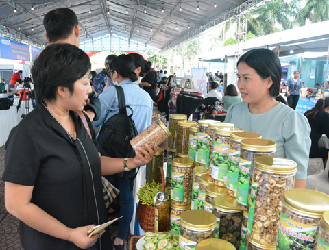 Chị Dương Thị Thơm giới thiệu sản phẩm trà dược liệu cho khách hàng
