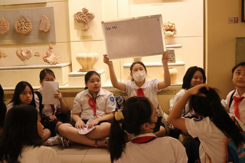 Học sinh Trường THCS Trưng Vương học tại Bảo tàng Lịch sử quốc gia vào cuối tháng 10/2022..