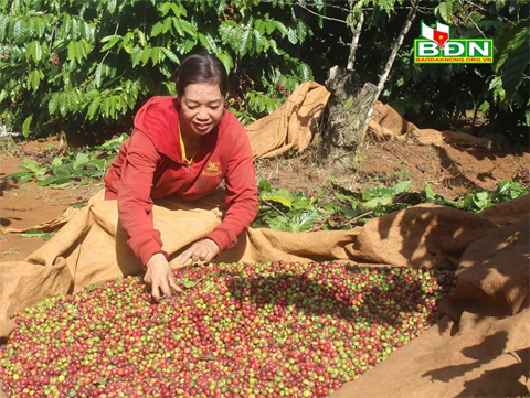 Chị Nguyễn Thị Hồng Vân, tổ dân phố 6, phường Nghĩa Tân (Gia Nghĩa) ngày càng chú trọng đến khâu thu hoạch, chế biến cà phê đúng cách