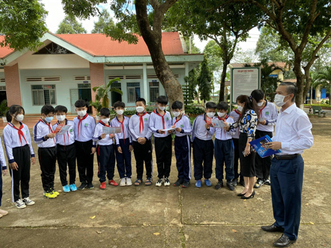 Bảo hiểm xã hội huyện Cư M'gar tuyền truyền về chính sách bảo hiểm y tế cho học sinh tại Trường THCS Nguyễn Tất Thành
