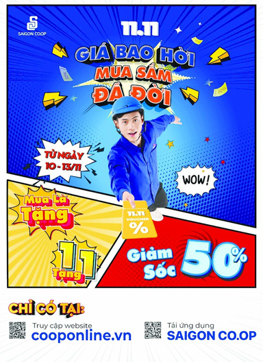 Kênh mua sắm trực tuyến www.cooponline.vn và ứng dụng Saigon Co.op trên các thiết bị di động thực hiện chương trình "Giá bao hời mua sắm đã đời" với 65.000 deal hời "mua 1 tặng 1" và giảm giá lên đến 50% cho các sản phẩm công nghệ, hóa phẩm đến từ các thương hiệu Co.op Select, Coca Cola, Lix, MaoBao, On The Body... diễn ra từ nay đến 13-11.