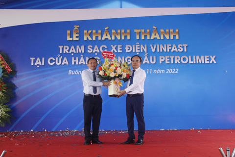 Ông Nguyễn Sỹ Cường, Phó Tổng Giám đốc Tập đoàn Xăng dầu Việt Nam chia sẻ, việc Tập đoàn Xăng dầu Việt Nam kết hợp với đối tác đặt trạm sạc xe điện tại cửa hàng xăng dầu trên địa bàn tỉnh Đắk Lắk sẽ góp phần thuận lợi hơn cho phát triển kinh tế, xã hội của tỉnh phù hợp với xu thế thời đại, góp phần bảo vệ môi trường.