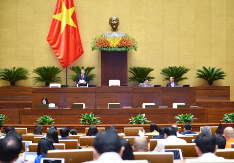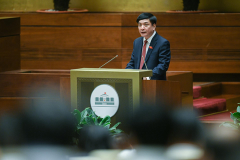 Tổng Thư ký Quốc hội, Chủ nhiệm Văn phòng Quốc hội Bùi Văn Cường trình bày Báo cáo giải trình, tiếp thu, chỉnh lý dự thảo Nghị quyết. Ảnh: Quochoi.vn