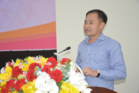 Lãnh đạo Sở Văn hoá, Thể thao và Du lịch tặng hoa động viên đại diện huấn luyện viên, vận động viên trước lúc lên đường làm nhiệm vụ