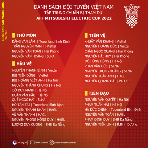 Đặc biệt là trường hợp của tiền vệ Nguyễn Quang Hải. Sau khi được Pau FC chính thức thông báo nhả về nước tham dự AFF Cup 2022, HLV Park Hang Seo lập tức điền bổ sung học trò cưng vào danh sách đội tuyển Việt Nam. Theo kế hoạch, Quang Hải sẽ trở về gia nhập đội tuyển từ ngày 15/12 cho đến khi kết thúc trọn vẹn hành trình cùng các đồng đội tại AFF Cup 2022.