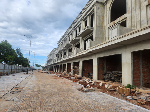 Các dãy phố thương mại liền kề đang được xây dựng tại khu đô thị Ân Phú