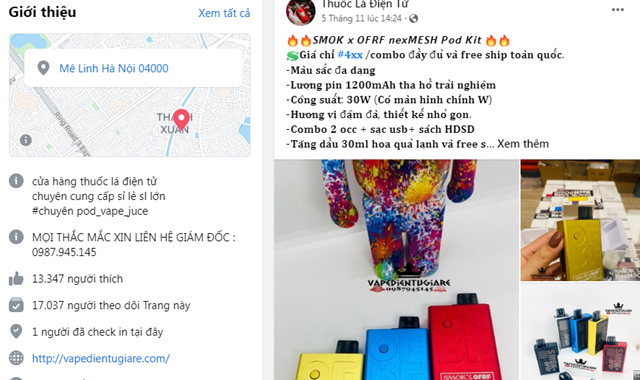Thuốc lá điện tử được bán tự do trên mạng xã hội Facebook.