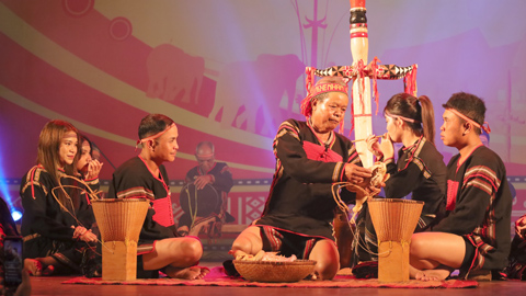 Tái hiện Lễ kết nghĩa anh em của người Êđê (huyện Krông Năng) trên sân khấu liên hoan.