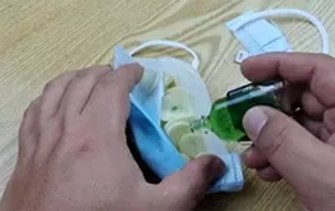 Lấy vài củ tỏi, cắt thành lát mỏng, nhỏ. Bọc tỏi đã cắt vào một chiếc khẩu trang, sau đó nhỏ dầu gió lên. Số lượng dầu nhỏ vào tỏi tùy theo sở thích nhưng không nên quá đậm đặc. Cuối cùng buộc túi lại.