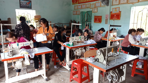 Lớp may dân dụng ở thôn 5, xã Krông Á.