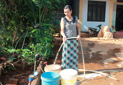 Định cư ở thôn 3 (xã Tân Tiến) hơn 26 năm, đã quen với việc sử dụng nước giếng nhưng khi được cán bộ Trung tâm Nước sạch và Vệ sinh môi trường nông thôn tỉnh cùng chính quyền địa phương thông báo về chủ trương đầu tư xây dựng công trình, lợi ích của việc sử dụng nguồn nước sạch, gia đình bà Huỳnh Thị Danh đã đăng ký đấu nối. Bà Danh cho biết: “Những hộ đăng ký ngay từ đầu đều được lắp đặt miễn phí đường ống, đồng hồ, kéo nước về tận nhà, rất thuận tiện. Nước giếng chỉ sử dụng để tắm giặt, tưới cây, còn nước sạch từ công trình đã qua xử lý gia đình dùng để nấu ăn, uống, vừa tiết kiệm, vừa bảo đảm vệ sinh”.