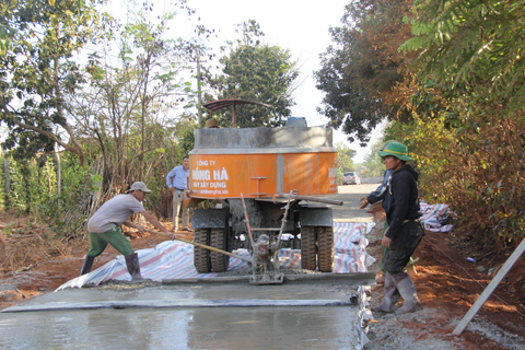 Vốn đầu tư phát triển nguồn ngân sách tỉnh năm 2022 đã giải 86,3 tỷ đồng cho Chương trình MTQG xây dựng nông thôn mới. Trong ảnh: thi công một công trình giao thông nông thôn tại xã Ea Khal, huyện Ea H'leo