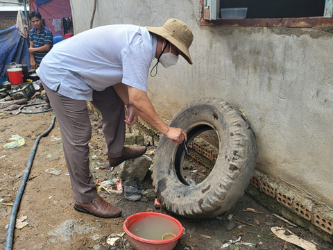 Cán bộ y tế kiểm tra lăng quăng (bọ gậy) tại khu vực dân cư trên địa bàn huyện Lắk. Ảnh: Mai Lê