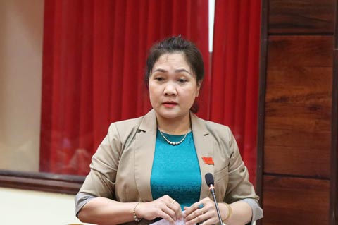 Đại biểu Tô Thị Tâm (Tổ đại biểu huyện Ea Kar) phát biểu tại phiên thảo luận tổ. Ảnh: Vạn Tiếp