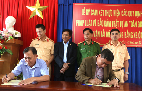 Các doanh nghiệp vận tải ký cam kết chở hàng đúng trọng tải.