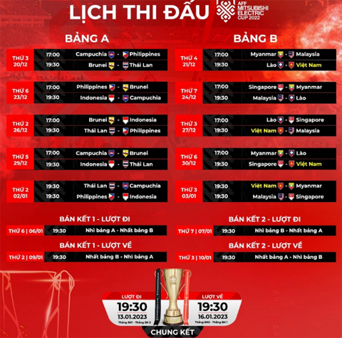 Lịch thi đấu AFF Cup 2022. Nguồn: AFF CUP 2022.