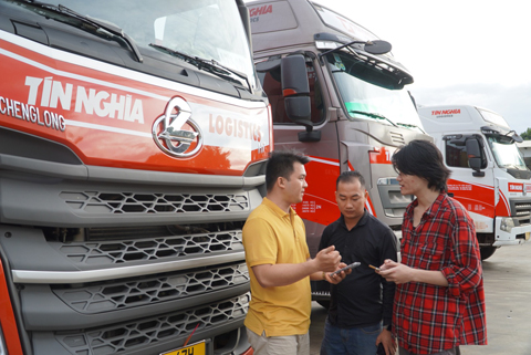 Tài xế Công ty Cổ phần Tín Nghĩa Logistic sử dụng phầm mềm quản lý vận tải khi vận chuyển hàng hóa