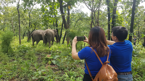 Du khách trải nghiệm tour du lịch ngắm voi trong Vườn Quốc gia Yok Đôn