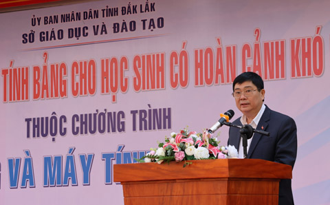 Sáng 26/12, tại Trường THCS Nguyễn Thị Minh Khai, TP Buôn Ma Thuột, Sở GD-ĐT đã tổ chức Lễ trao tặng máy tính bảng cho học sinh có hoàn cảnh khó khăn thuộc Chương trình “Sóng và máy tính cho em”.