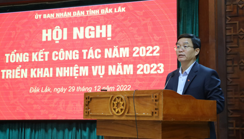 Phát biểu tại hội nghị, Ủy viên Trung ương Đảng, Bí thư Tỉnh ủy Nguyễn Đình Trung nhấn mạnh: năm 2022, Đắk Lắk đã đạt được nhiều kết quả nổi bật và toàn diện. Bên cạnh đó, trong năm 2022, Đắk Lắk đã được Quốc hội thông qua Nghị quyết về chủ trương đầu tư Dự án đầu tư xây dựng đường bộ cao tốc Khánh Hòa - Buôn Ma Thuột và Đề án thí điểm một số cơ chế, chính sách đặc thù phát triển thành phố Buôn Ma Thuột, sẽ tạo điều kiện thuận lợi cho việc khai thác và phát huy hiệu quả các tiềm năng, lợi thế của địa phương để phát triển nhanh và bền vững, đẩy mạnh chuyển dịch cơ cấu kinh tế, sớm đạt được các mục tiêu đã đề ra tại Kết luận số 67-KL/TW của Bộ Chính trị.