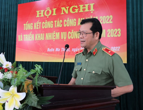 Tham dự hội nghị có Thiếu tướng Lê Vinh Quy, Giám đốc Công an tỉnh; Bí thư Thành ủy Buôn Ma Thuột Từ Thái Giang; Chủ tịch UBND TP. Buôn Ma Thuột Vũ Văn Hưng.
