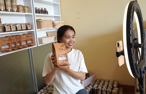 Startup Nguyễn Thị Thu Hà (huyện Cư M’gar) livestream bán hàng qua mạng Internet