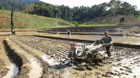 Nhiều gia đình người dân tộc Mông ở thôn Cư Dhắt đã đưa cơ giới vào sản xuất.