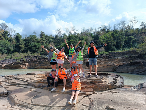 Du khách trải nghiệm tại cụm thác Dray Nur - Gia Long (huyện Krông Ana) vào dịp đầu năm mới.