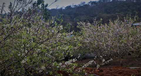 Vòng quanh qua những con đường đèo uốn lượn từ TP. Đà Lạt tới huyện Lạc Dương, du khách có thể tìm đến quán cà phê Gấu (xã Đạ Chais) để ngắm nhìn vườn mận đang độ rộ bông trắng muốt